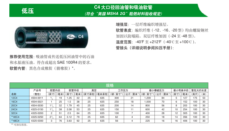 低压C4大口径回油管和吸油软管