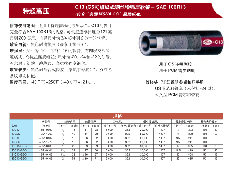 特超高压C13(G5K)缠绕式钢丝层软管-SAE100R13