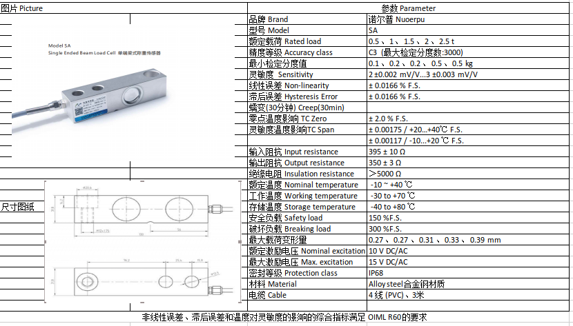 SA 单端梁式称重传感器 Single Ended Beam Load Cell